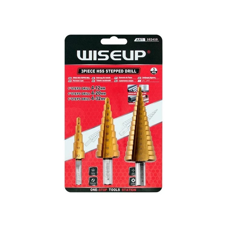 ست 3 عددی مته کاجی صنعتی وایزآپ مدل 102410 WISEUP 3PCS HSS STEP DRILL BIT SET MODEL داشتن متههای با کیفیت در هنگام دریل کاری، یکی از دلایل موفقیت شما در کارهای مختلف خواهد بود. ست مته کاجی 3 عددی وایزاپ 102410، دارای متههای بسیار باکیفیت است که این متهها میتوانند دریل شما را در پروژههای مختلف همراهی کنند. مته کاجی یا پله ای وایزآپ از فولاد HSS یا HIGH SPEED STEEL ساخته شده است از جمله مته های صنعتی شرکت وایزآپ می باشد. اگر در کارهای ساختمانی، صنعتی و برش نیاز به مته با کیفیت دارید مته پله ای وایزآپ یک انتخاب بسیار مناسب است. مته کاجی وایزآپ از سایز 4 الی 32 میلی متر و در یک بسته بندی منظم قرار دارد. شعار این مته، CUT IRON LIKE MUD یا آهن را مثل پنیر برش میدهد است. وزن آن 250 گرم است. مته کاجی 3 عددی وایزآپ استفاده کاربری راحتی دارد و به آسانی میتوانید در کارهای برش از آن استفاده کنید.
