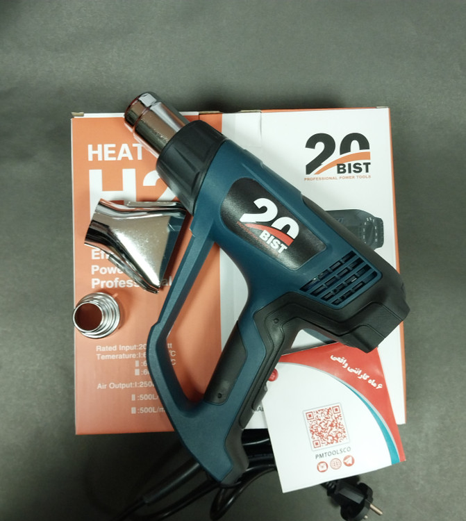 سشوار صنعتی بیست دارای سیستم تنظیم هوا و حرارت بوده که حرات کم این دستگاه 100تا 350 درجه سانتیگرادو حرارت زیاد این دستگاه از 100تا550 درجه سانتیگراد میباشد.متعلقات این سشوار دو عدد سری فلزی و دارای گارانتی 6 ماهه شرکت پی ام انکور است.این سشوار از محصولات شرکت پی ام بوده و این شرکت این دستگاه را با قیمت اقتصادی به بازار عرضه کرده است.
