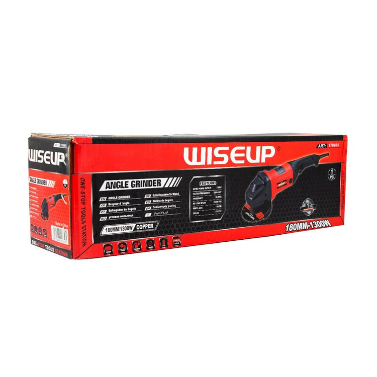 فرز آهنگری 180 میلیمتری وایزآپ مدل 170103Wiseup Angle Grinder Model مشخصات کلی: قطر صفحه: 180 میلیمتر توان:2000 وات سرعت گردش آزاد: 6500 دور در دقیقه فرکانس: 50/60 هرتز موتور مس ویژگی ها: مجهز به موتور قدرتمند دارای دسته ارگونومیک برای راحتی کار دارای محافظ صفحه دارای کلید ضد غبار اگر به دنبال یک فرزآهنگری خوب و با کیفیت هستید این محصول وایزآپ انتخاب مناسب برای شما است. کاربرد: مناسب برای برش انواع فلزات، قابل استفاده در مصارف خانگی، صنعتی، و کارگاهی فرز آهنگری 180 میلیمتری وایزآپ مدل 170103 یک فرز آهنگری با کیفیت و قدرتمند است که برای مصارف خانگی، صنعتی، و کارگاهی مناسب می باشد. این فرز آهنگری دارای قیمت مناسب، وزن کم است. مجهز به شاسی قفل کن کلید برق به منظور سهولت در کار مداوم با ابزار، دارای كليد ضد غبار، پوسته گیر بکس آلومینیومی، قابلیت تعویض سریع و آسان ذغال، دارای دسته کمکی ضد تعريق، داراى حفاظ قابل تنظيم، داراى كابل 2 مترى با روكش ضخيم، قابليت تعويض وآسان صفحه بر ش، دارای دسته همسان با ارگونومیک کف دست، دارای کابل VDE آلمان، دارای سیمپیچ 100% مسی میباشد