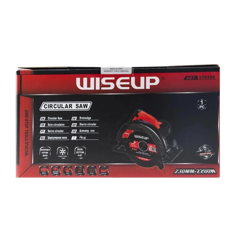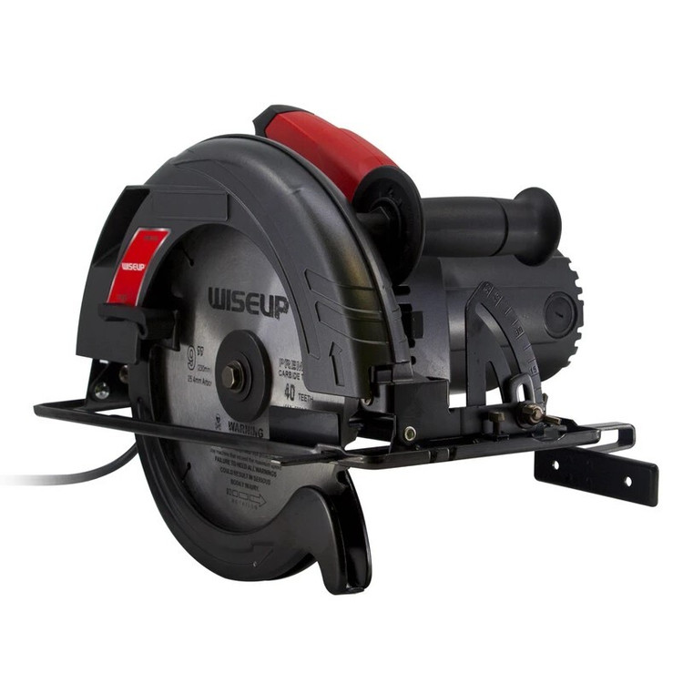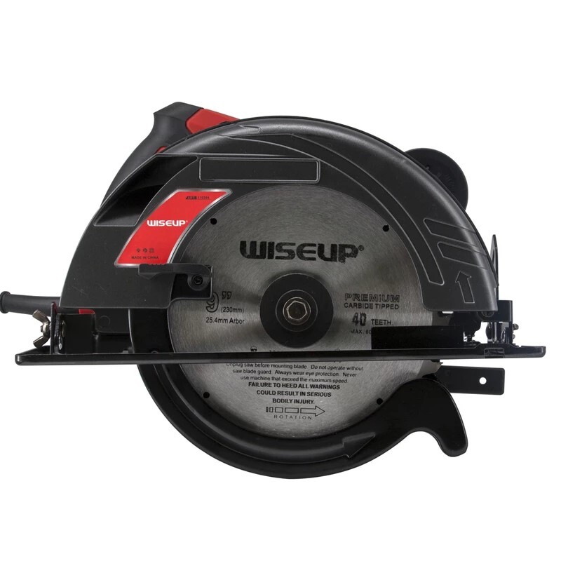 اره دیسکی 230 میلیمتری وایزآپ WISEUP CIRCULAR SAW MODEL 170304 اره دیسکی 230 میلیمتری وایزآپ یکی از محصولات باکیفیت از برند WISEUP است. این اره گرد بر با سرعت 5000 دور بر دقیقه جهت انجام فعالیت های عمومی و صنعتی بسیار مناسب است. قطر صفحه برش در این اره کارآمد 230 میلی متر است.این محصول حرفه ای از برند آوایزآپ با کارایی و عملکرد بسیار خوب خود دارای موتور پرقدرت با توان 2200 وات است. این اره دیسکی برای انجام کارهای سنگین بسیار مناسب و کارآمد است. اره دیسکی وایزآپ با قطر 230 میلی متر یکی از محصولات پرطرفدار است که با برخوداری از ویژگی ها و مزیت های بسیار، قیمتی مناسب و مقرون به صرفه دارد. اگر به دنبال یک اره دیسکی با کارایی بالا هستید این محصول میتواند برای شما مناسب باشد. اره دیسکی یا گردبر یکی از ابزارهای مهم و کاربردی در نجاری است و به کاربر امکان میدهد تا بتواند انواع برش طولی، عرضی و مایل را ایجاد کند. ایجاد شیار در متریال هایی مانند چوب، ویژگی دیگر این کالای کاربردی است. با استفاده از این اره میتوانید زاویه و عمق برش را تنظیم کنید و به طور کلی از آن برای برش انواع تخته، چوب، ام دی اف و سنگ های ساختمانی یا فلز استفاده کنید. استفاده در صنعت در و پنجره، مبلمان سازی، کابینت سازی و کارگاه های ساختمانی از دیگر کاربردهای اره گرد بر است. اره گرد بر دستی برقی یا همان اره نفوذی ابزاری بسیار کارآمد و لازم برای هر کارگاه نجاری می باشد که نیاز کاربران را به راحتی بر طرف می کند.با توجه به اندازه این دستگاه به نسبت سایر ابزار نجاری کوچک است اما از قابلیتها و تواناییهای این دستگاه نمی توان چشم پوشی کرد. اره گردبر برقی ساختاری بسیار ساده دارد اما می تواند کارهای پیچیده را به راحتی انجام دهد.همانطور که از اسم این دستگاه پیداست، اره گرد دستی وظیفه برش چوب و انواع ورقهای چوبی و MDF است.این برش میتواند بهصورت زاویه قائمه و یا هر زاویه دیگر صورت پذیرد. از مزیت های منحصر این دستگاه داشتن موتور تمام مس است.